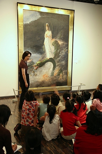 独立行政法人国立美術館では、全国の小・中学校教員、指導主事、学芸員を対象とした「平成20年度 美術館を活用した鑑賞教育の充実のための指導者研修」を7月28日(月)~30日(水)まで東京国立近代美術館(千代田区竹橋)及び国立新美術館(港区六本木)を会場として実施しました。この研修では、近年重要な活動とされている美術の鑑賞教育の充実を図るため、小・中学校等の教員と美術館の学芸員等が一堂に会してグループ討議等を行うことにより、美術館を活用した鑑賞教育の充実及び学校と美術館の一層の連携を図ろうとするものです。